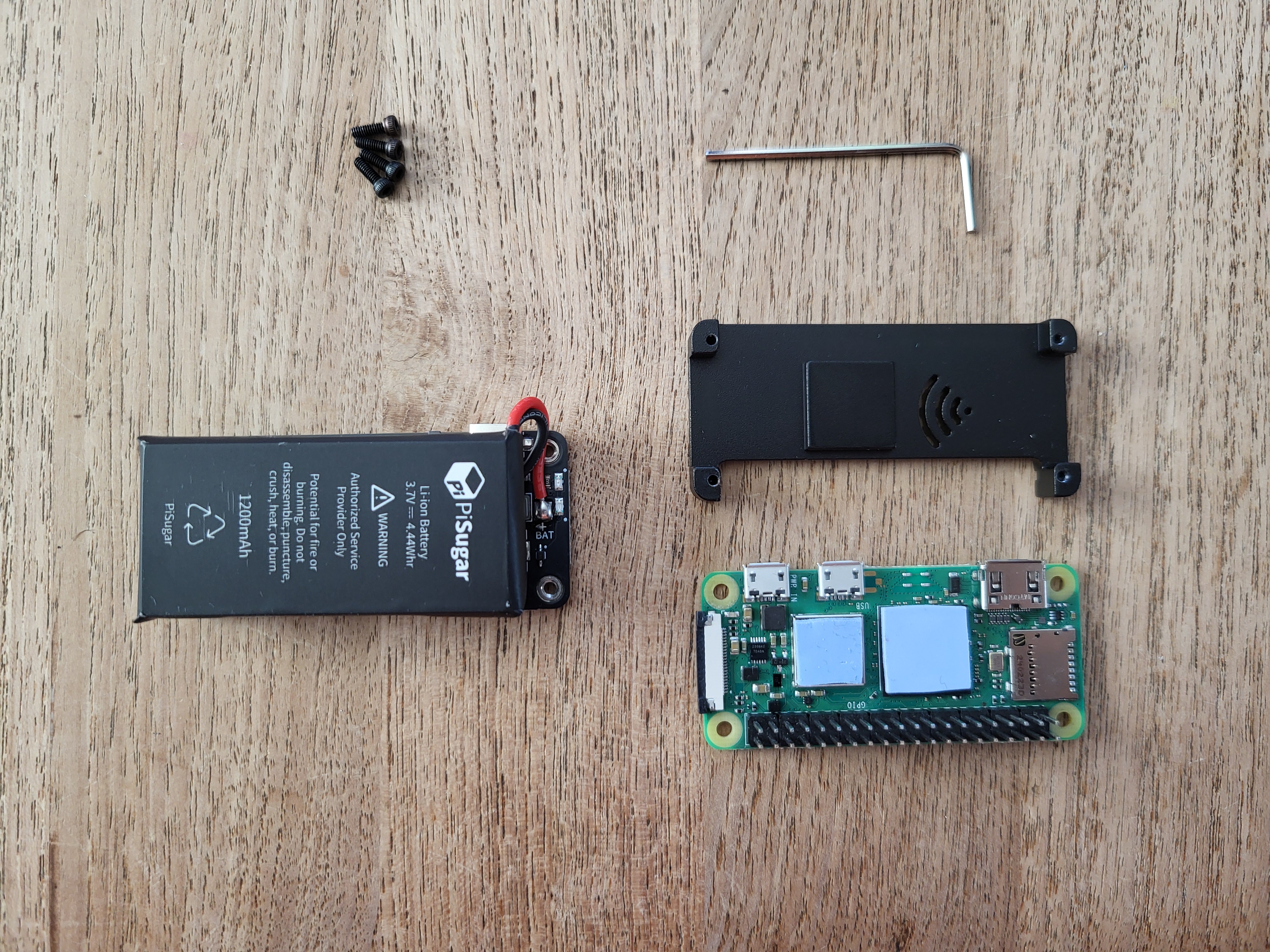 - The four hex head screws from the Pi Zero case kit and the corresponding hex wrench, also included (Your case kit may have other screws for different top lids; make sure to use the ones that fit the included hex wrench).